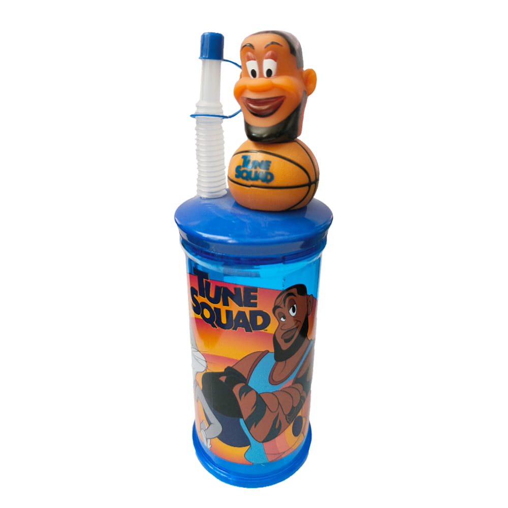 Plastikowy kubek z dołączoną rurką, ozdobiony motywem z filmu "Kosmiczny Mecz" oraz figurką koszykarza Jamesa Lebrona to doskonały upominek na wiele okazji!