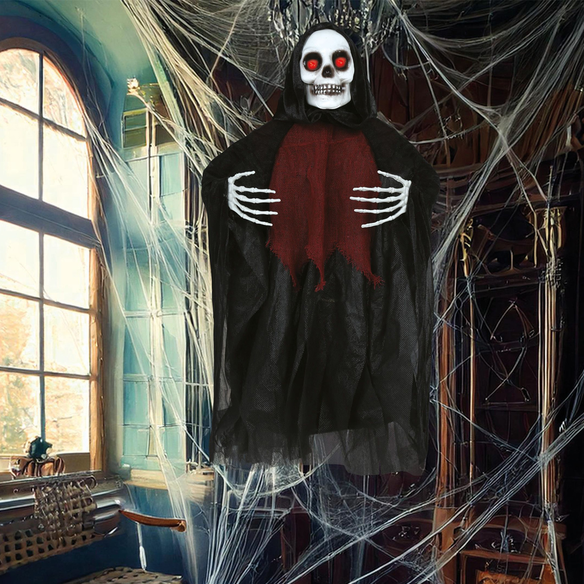 KUKŁA WISZĄCA SZKIELET Z CZERWONYMI OCZAMI CZARNY 60cm