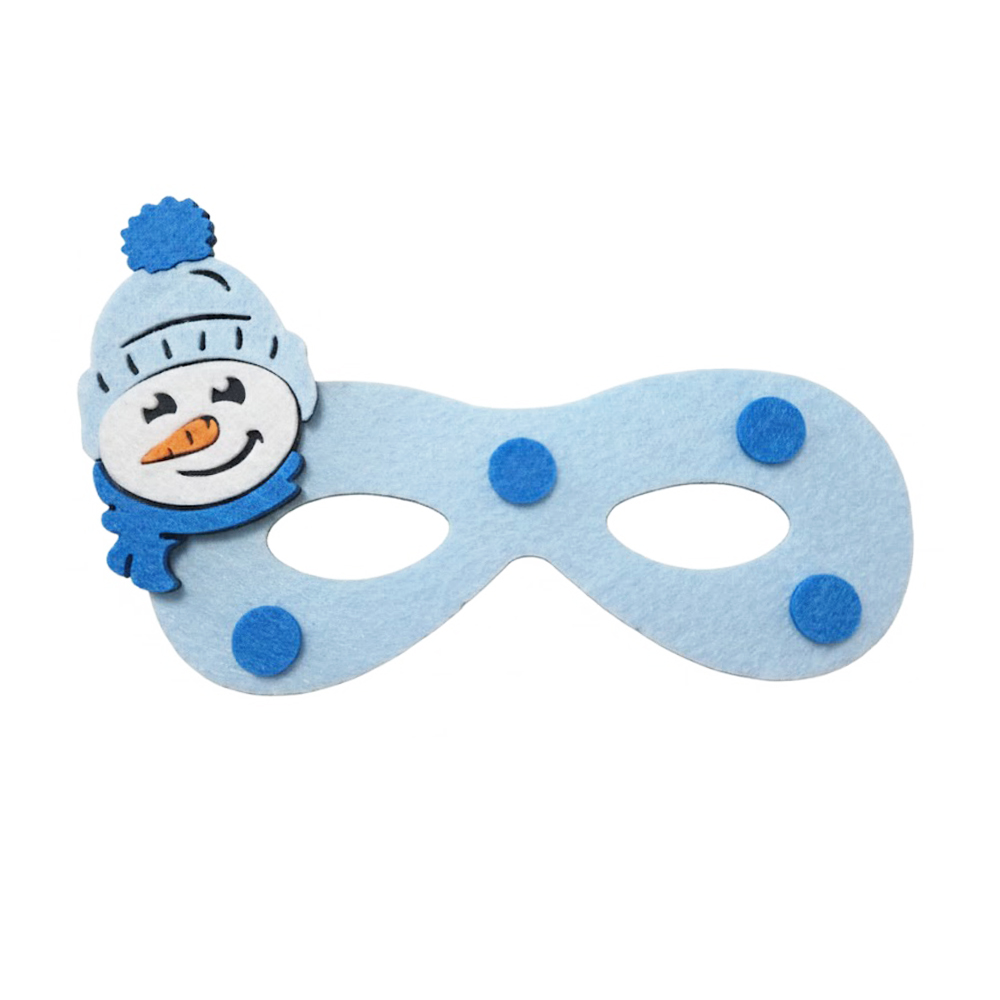 Przedstawiamy filcową maskę z bałwankiem, która z pewnością pobudzi wyobraźnię do działania! Maska w kolorze błękitnym została udekorowana emblematem uśmiechniętego bałwanka w czapce oraz kilkoma niebieskimi kropeczkami, nadając jej wesoły i zabawny charakter. Z tyłu przymocowana jest elastyczna gumka, dzięki czemu maska stabilnie układa się na głowie, zapewniając komfort podczas każdej zabawy!