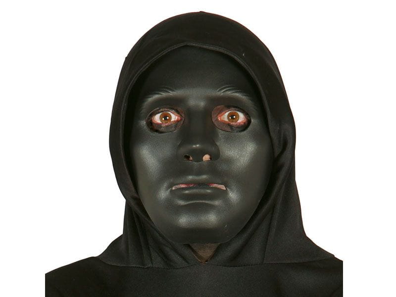 Czarna, matowa maska wykonana z plastiku o kamiennym wyrazie twarzy to prosty dodatek, który nada niesamowity efekt wielu stylizacjom! Stań się katem o kamiennej twarzy, mimem, a nawet czarną kostuchą!