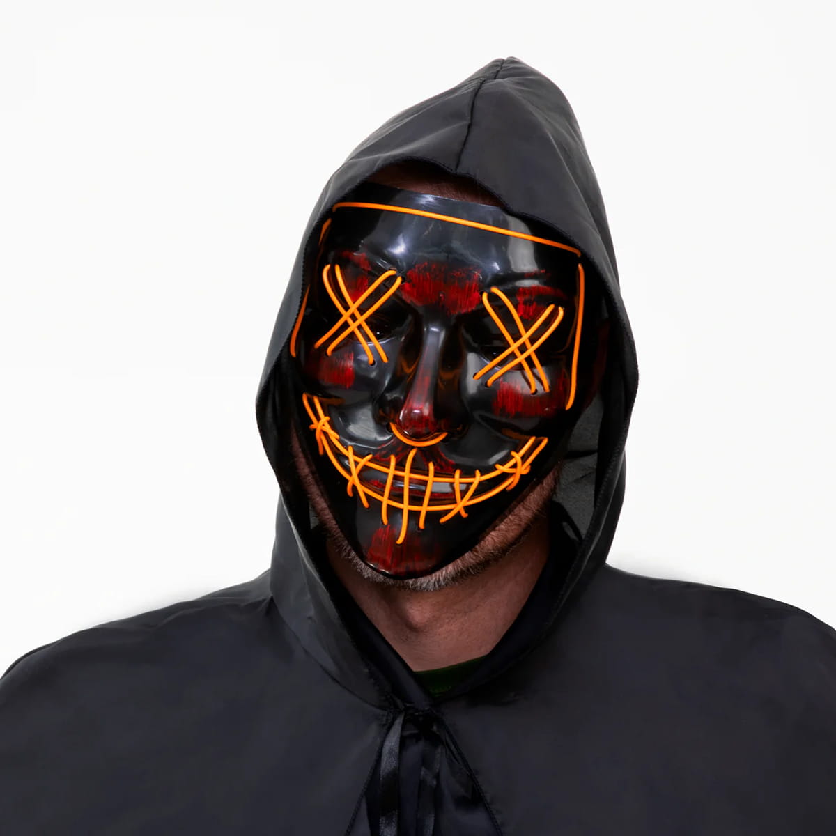 MASKA CZASZKA ŚWIECĄCA CZARNO-NEON POMARAŃCZOWA