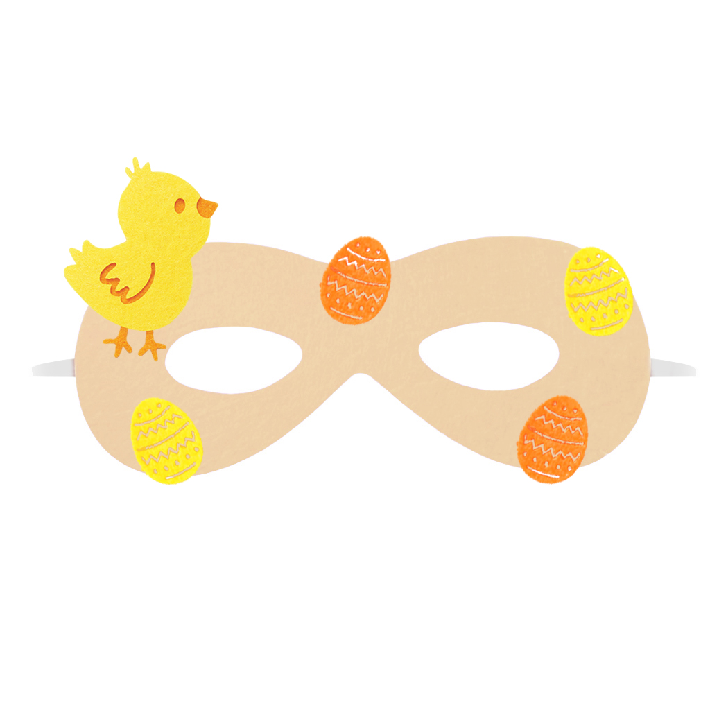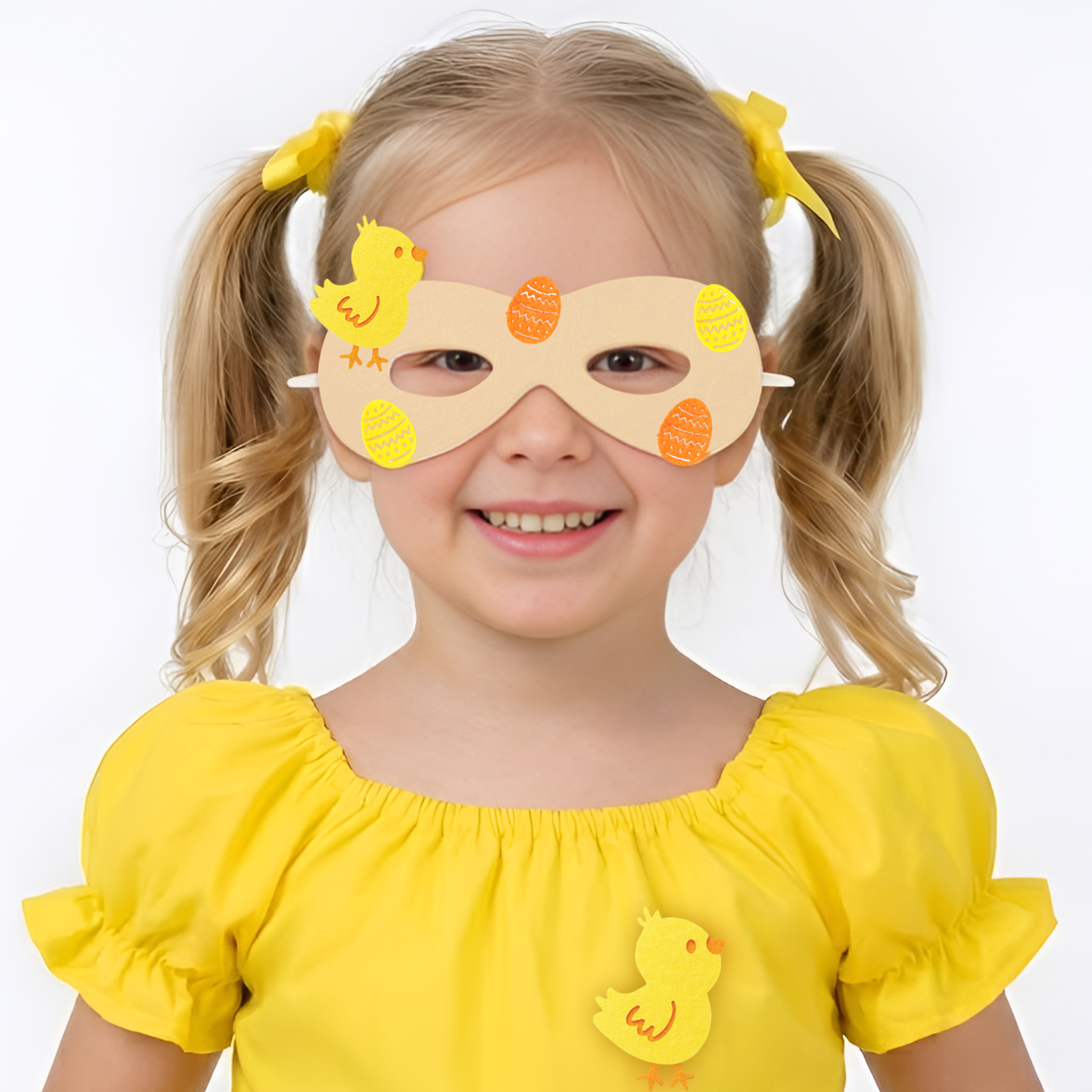 Przedstawiamy filcową maskę kurczaczka w kolorze beżowym, która z pewnością pobudzi wyobraźnię do działania! Maska została udekorowana żółtym emblematem kurczaczka oraz kilkoma żółtymi i pomarańczowymi pisankami, nadając jej wesoły i zabawny charakter! Z tyłu przymocowana jest elastyczna gumka, dzięki czemu maska stabilnie układa się na głowie, zapewniając komfort podczas każdej zabawy.