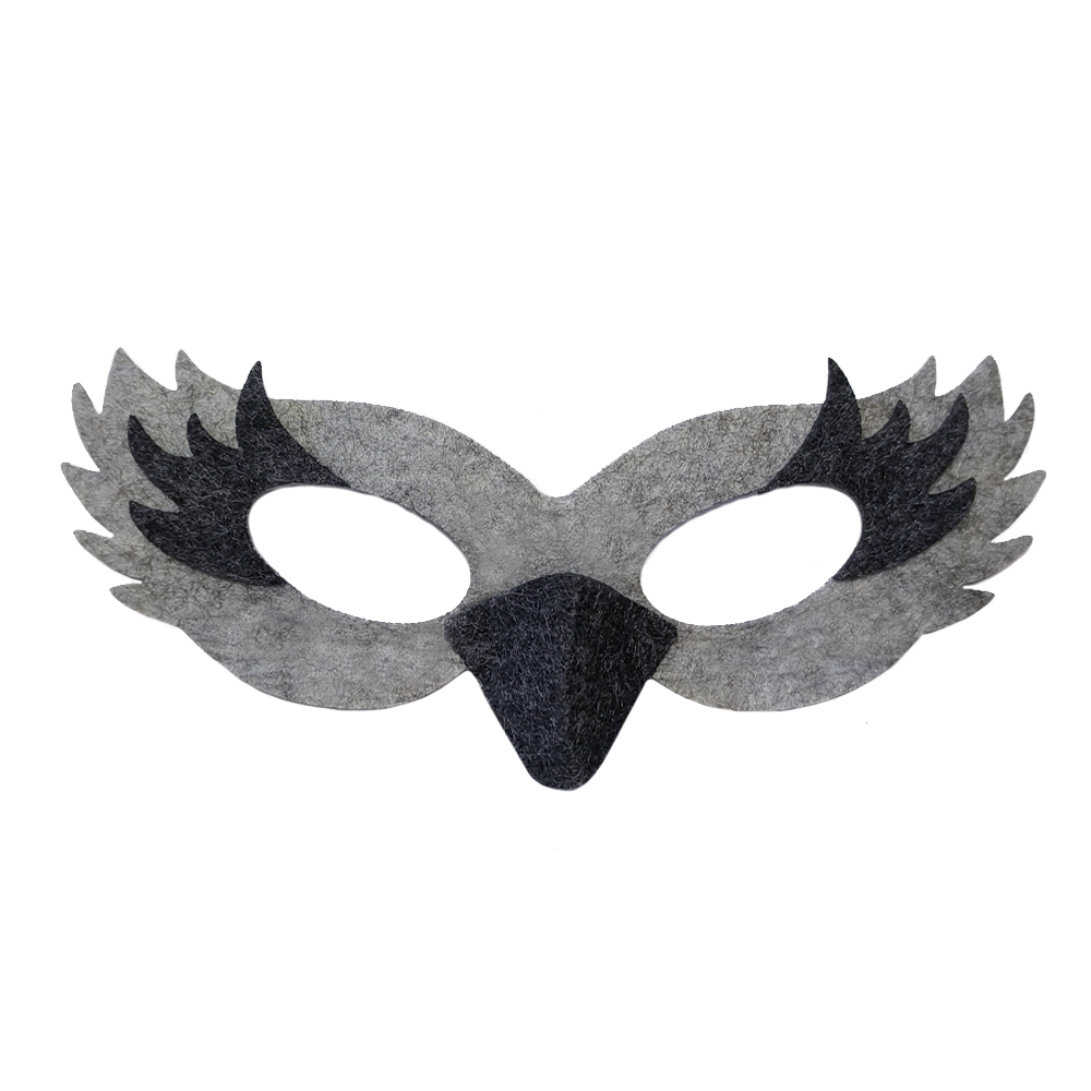 Urocza maska szarego ptaszka to doskonała propozycja dla małych miłośników latających stworzeń! Wykonana z miękkiego, szarego filcu, ozdobiona jest dodatkowo grafitowym, lekko wypukłym dzióbkiem oraz delikatnymi grafitowymi elementami wokół oczu, które pięknie imitują pióra. Całość nadaje masce żywy, przyjazny i realistyczny wygląd. Z tyłu przymocowana jest elastyczna gumeczka, dzięki której maska będzie stabilnie trzymać się na twarzy podczas każdej zabawy!