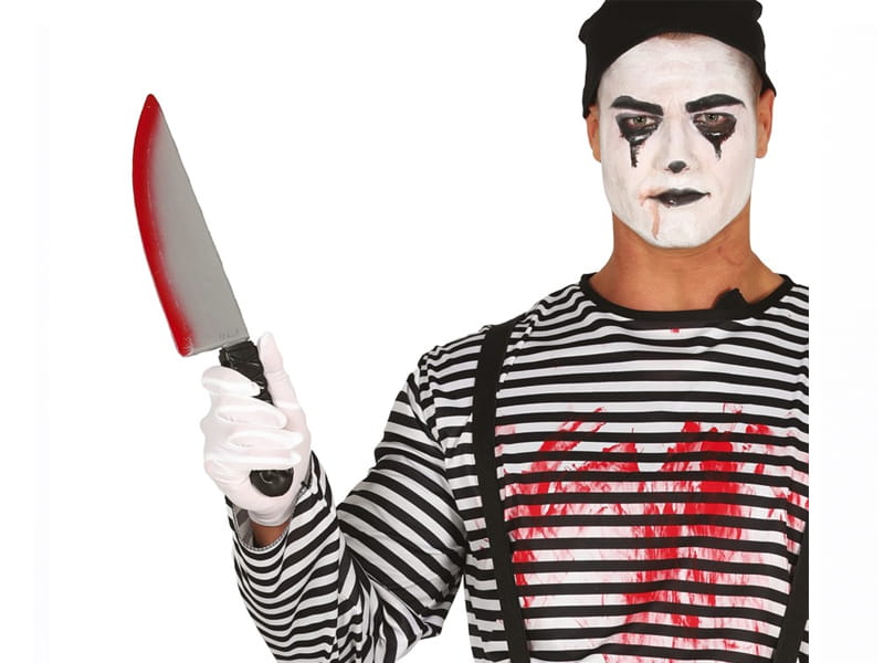 Nóż wykonany z plastiku ze śladami krwi idealnie uzupełni wiele kostiumów na Halloween! Wczuj się w rolę mordercy, rzeźnika, psychopaty... i przestrasz każdego zakrwawionym nożem!