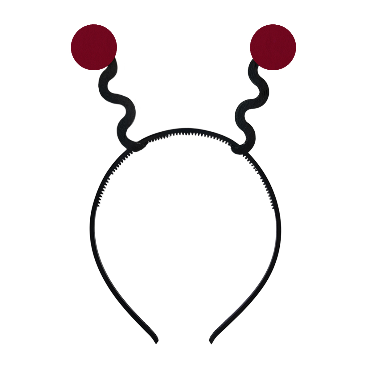 Lekka i elastyczna opaska wykonana z trwałego plastiku to fantastyczna baza, która błyskawicznie nada charakteru dowolnemu przebraniu owada! Wyposażona w dwa urocze, falowane czułki z miękkiego filcu, opaska świetnie zachowuje swój kształt, nie krępując przy tym ruchów. Zakończenia czułków zdobią jednowarstwowe filcowe kropeczki w kolorze bordowym, które dodają ozdobie wyjątkowo pogodnego charakteru. Opaska jest wygodna i stabilnie trzyma się na głowie, nie uciskając jej nawet podczas najbardziej szalonych zabaw na balu przebierańców.