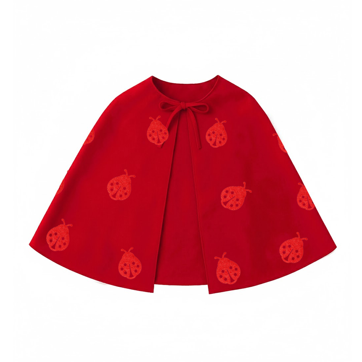 Czerwona pelerynka wykonana jest z lekkiego materiału pongee, który pięknie układa się podczas ruchu, tworząc eteryczny efekt. Do pelerynki przyczepione są małe, okrągłe rzepy, które służą do przypięcia czerwonych filcowych biedronek dołączonych do zestawu. Ten kreatywny sposób sprawia, że Twoje Dziecko może wziąć udział w tworzeniu własnego stroju, dając mu satysfakcję z wykonanego zadania!