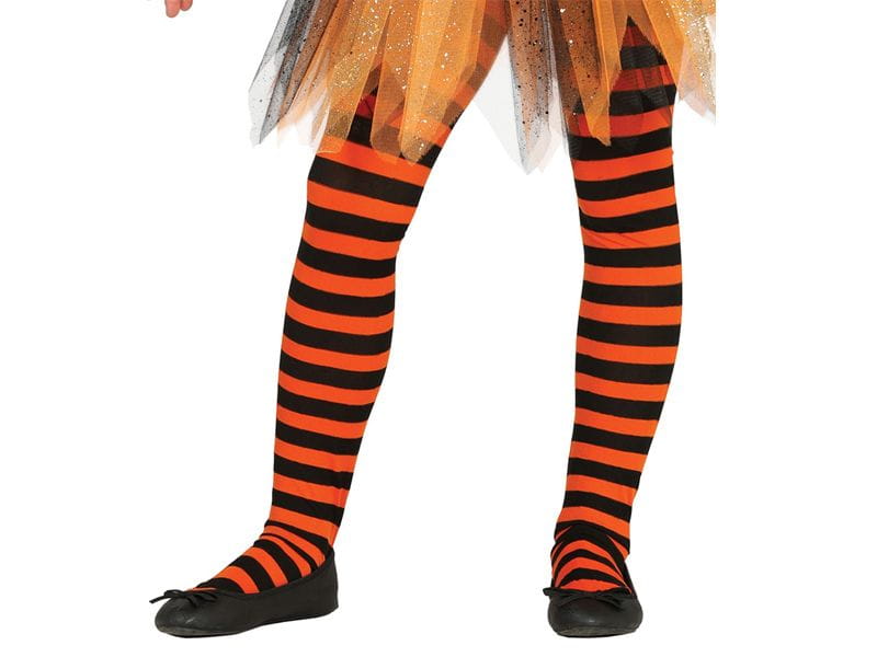 RAJSTOPKI DZIECIĘCE W PASKI CZARNO-POMARAŃCZOWE