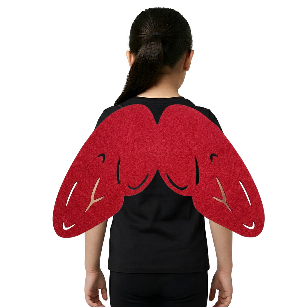 Wykonane z miękkiego, czerwonego filcu, skrzydełka są lekkie i wygodne w noszeniu. Mocowane są na elastycznej gumce, co gwarantuje łatwe zakładanie i idealne dopasowanie do każdego rozmiaru. Skrzydełka znakomicie sprawczą się do stroju motylka, biedronki, wróżki i wielu innych przebrań!