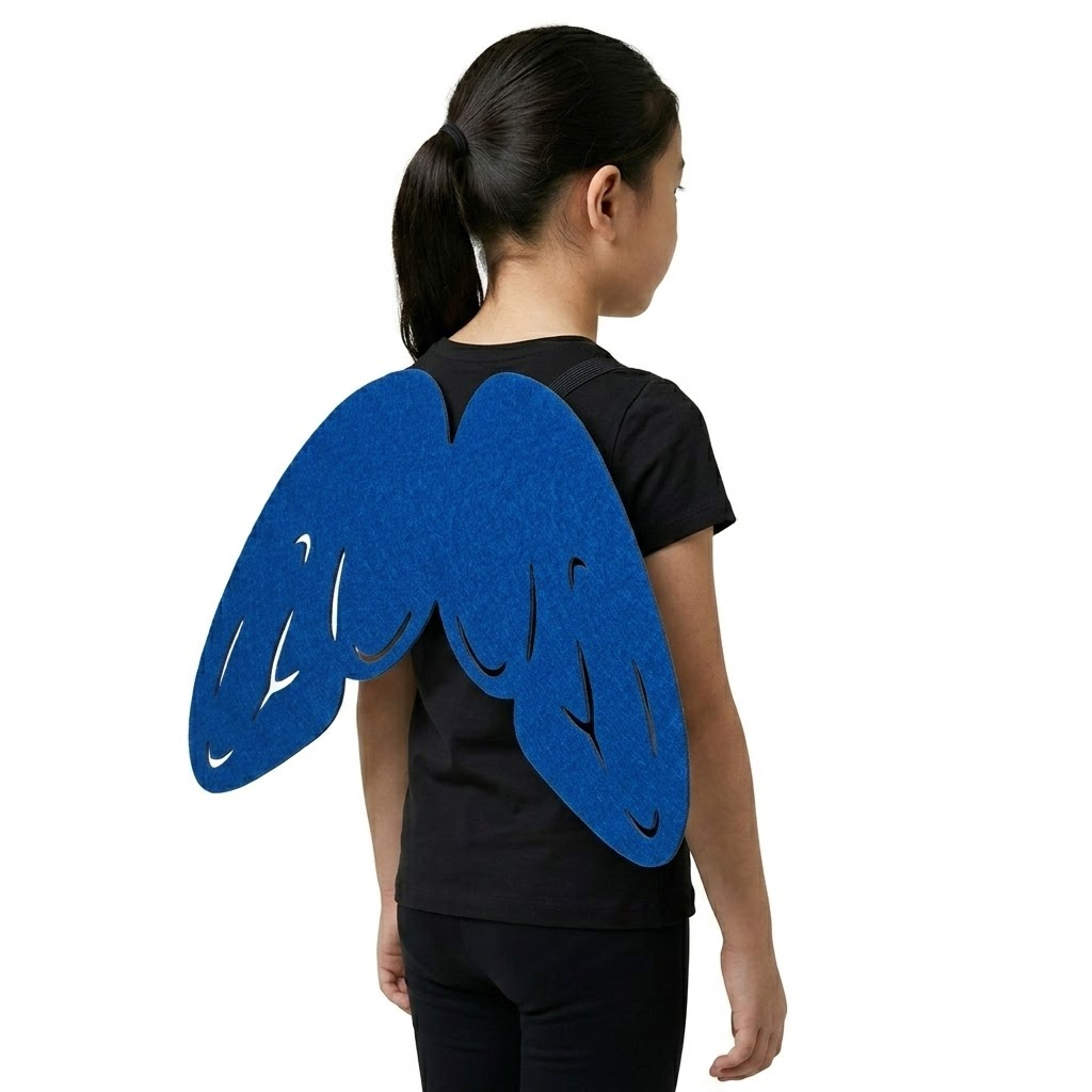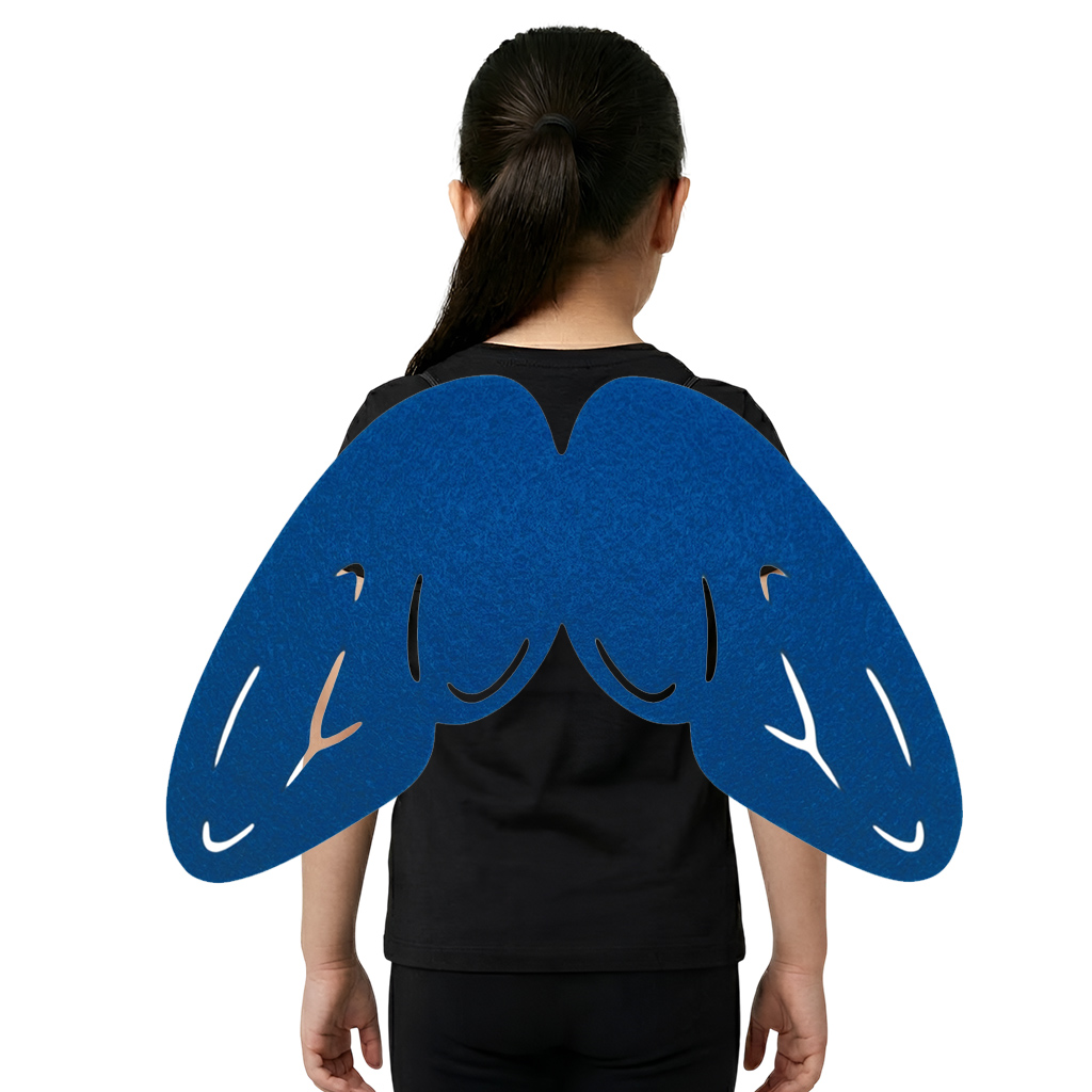 Wykonane z miękkiego, granatowego filcu, skrzydełka są lekkie i wygodne w noszeniu. Mocowane są na elastycznej gumce, co gwarantuje łatwe zakładanie i idealne dopasowanie do każdego rozmiaru. Skrzydełka znakomicie sprawczą się do stroju muchy, nocnego motyla oraz innych owadów, wróżki, nocy i wielu innych przebrań!