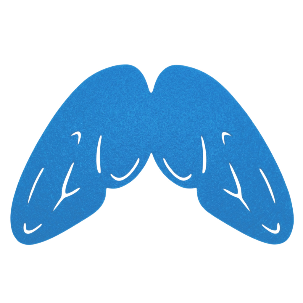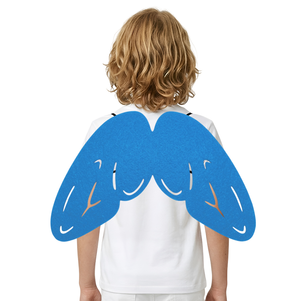 Wykonane z miękkiego, niebieskiego filcu, skrzydełka są lekkie i wygodne w noszeniu. Mocowane są na elastycznej gumce, co gwarantuje łatwe zakładanie i idealne dopasowanie do każdego rozmiaru. Skrzydełka znakomicie sprawczą się do stroju nocnego motyla oraz innych owadów, wróżki, sikorki i wielu innych przebrań!