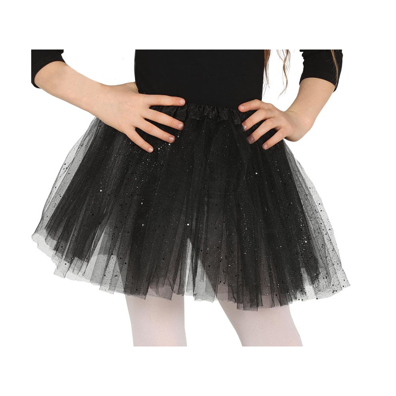 SPÓDNICZKA TIULOWA METALICZNY BROKAT CZARNA 30cm