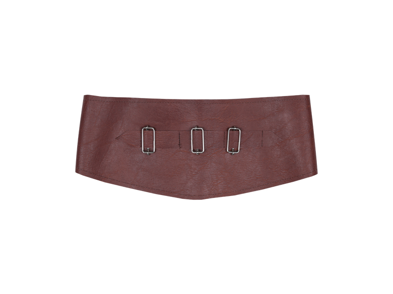 - brązowy pas, wykonany ze skaju, zapinany na plastikową klamrę na gumce