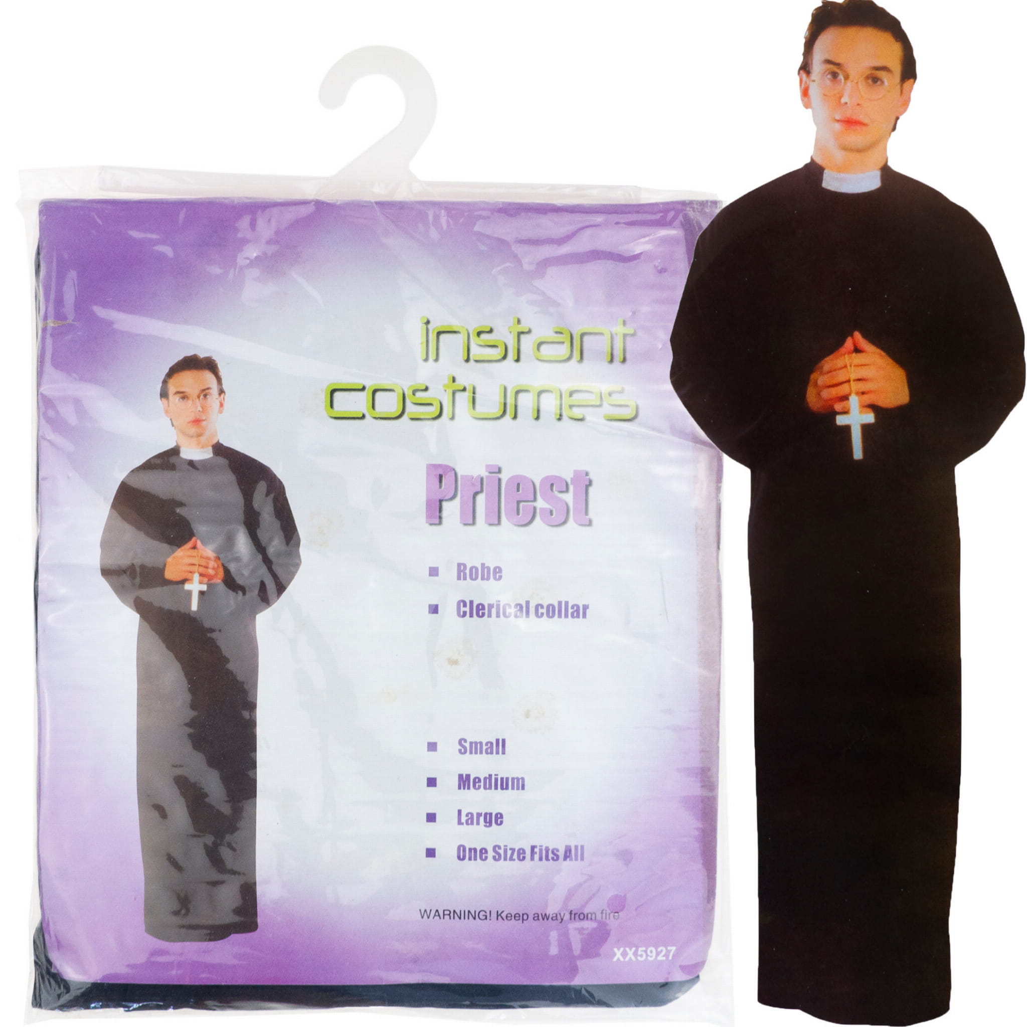 Długa, czarna sutanna księdza to ciekawy i oryginalny strój na Bal Przebierańców lub Halloween! Przebierz się za dobrotliwego duchownego lub upiornego kleryka i zachwyć wszystkich na imprezie!