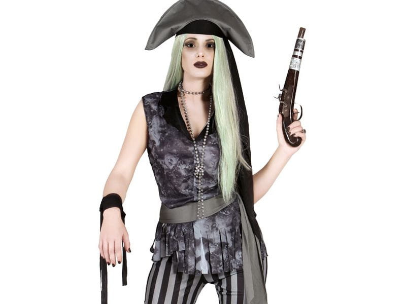 zachowany w szarych barwach strój Piratki,