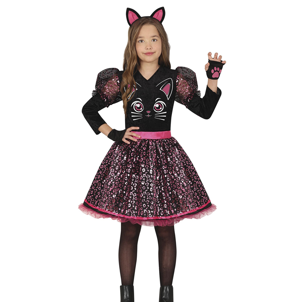 STRÓJ SUKIENKA KOTEK CĘTKI CZARNO-RÓŻOWA 142-148