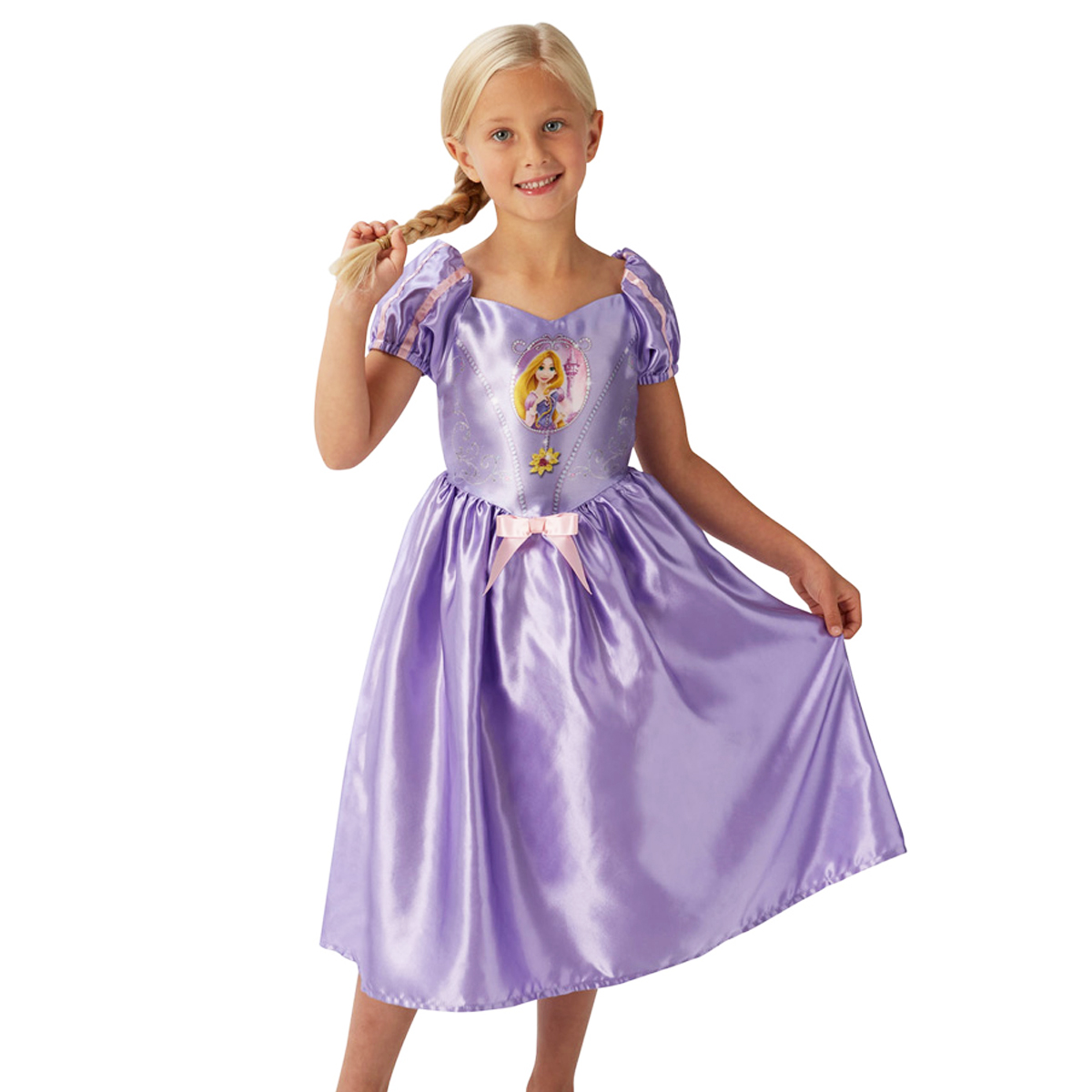 Zbliża się Karnawał, Bal Przebierańców, Dzień Postaci z Bajek - a może po prostu urodziny Twojej małej Księżniczki i szukasz odpowiedniego przebrania? Oto idealne rozwiązanie: sukienka księżniczki Roszpunki! Licencjonowany strój Disneya składa się z fioletowej sukienki z krótkimi, bufiastymi rękawami i wizerunkiem Roszpunki na piersi.