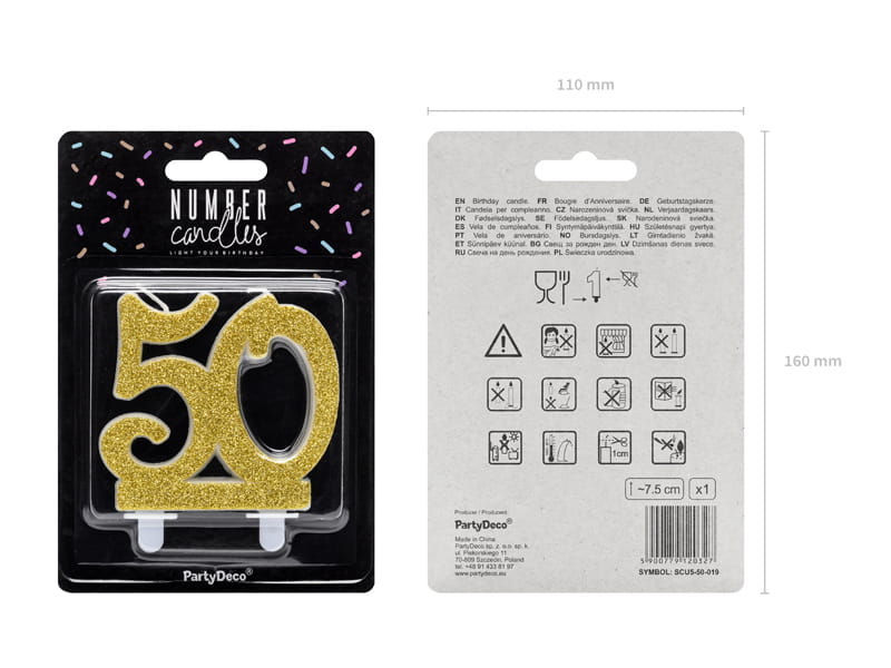 ŚWIECZKA 50 BROKAT ZŁOTA 7,5cm
