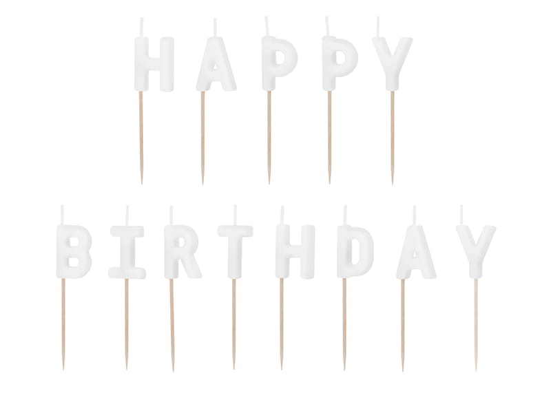 ŚWIECZKI URODZINOWE HAPPY BIRTHDAY BIAŁE 25cm 13szt