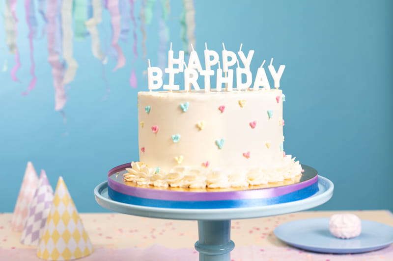 Świeczki urodzinowe Happy Birthday w kolorze białym z drewnianymi podstawkami, wysokość ok. 2.5 cm.(1 op. / 13 szt.)
