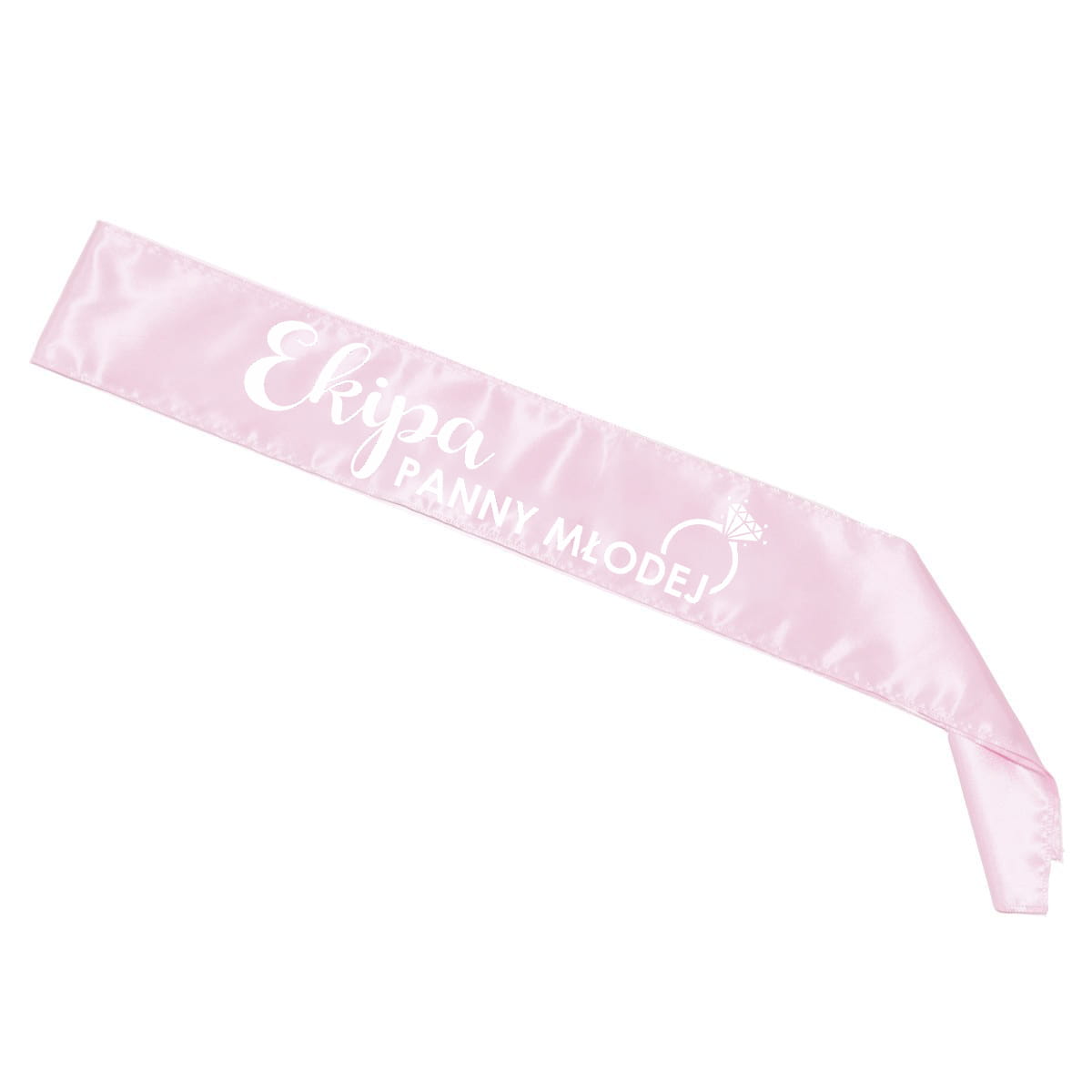 Jasnoróżowa szarfa wykonana z satyny poliestrowej wraz z białym napisem "Ekipa Panny Młodej" sprawdzi się doskonale jako dodatek do stroju każdej uczestniczki Wieczoru Panieńskiego!