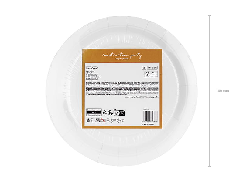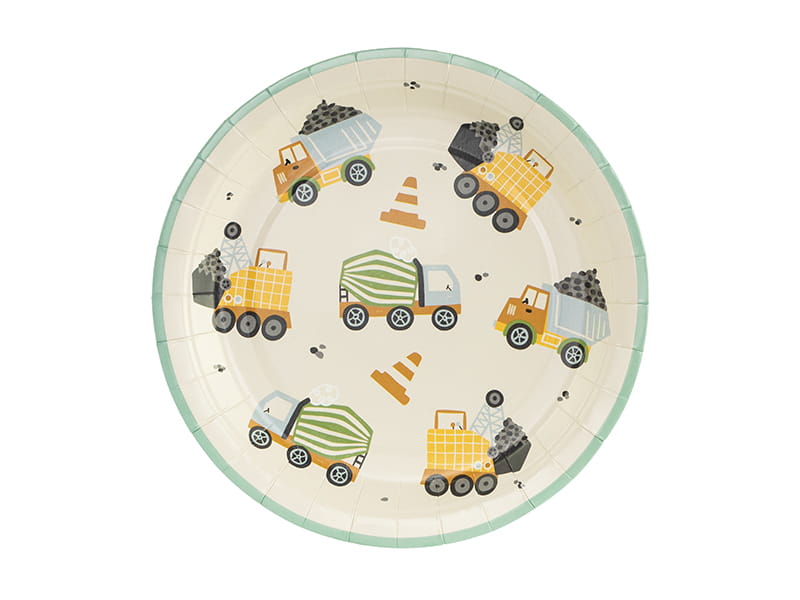 Talerzyki papierowe Pojazdy budowlane, mix kolorów, wymiary ok. 18 x 18 cm.(1 op. / 6 szt.)