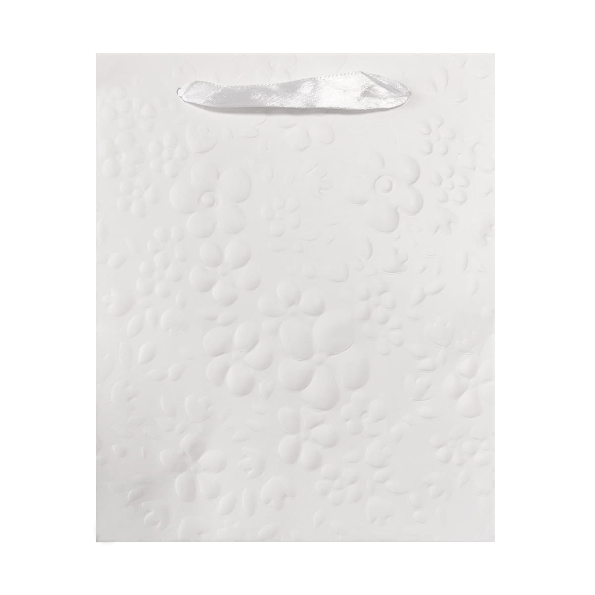 TOREBKA PREZENTOWA KWIATY TŁOCZONA BIAŁA 30x40cm