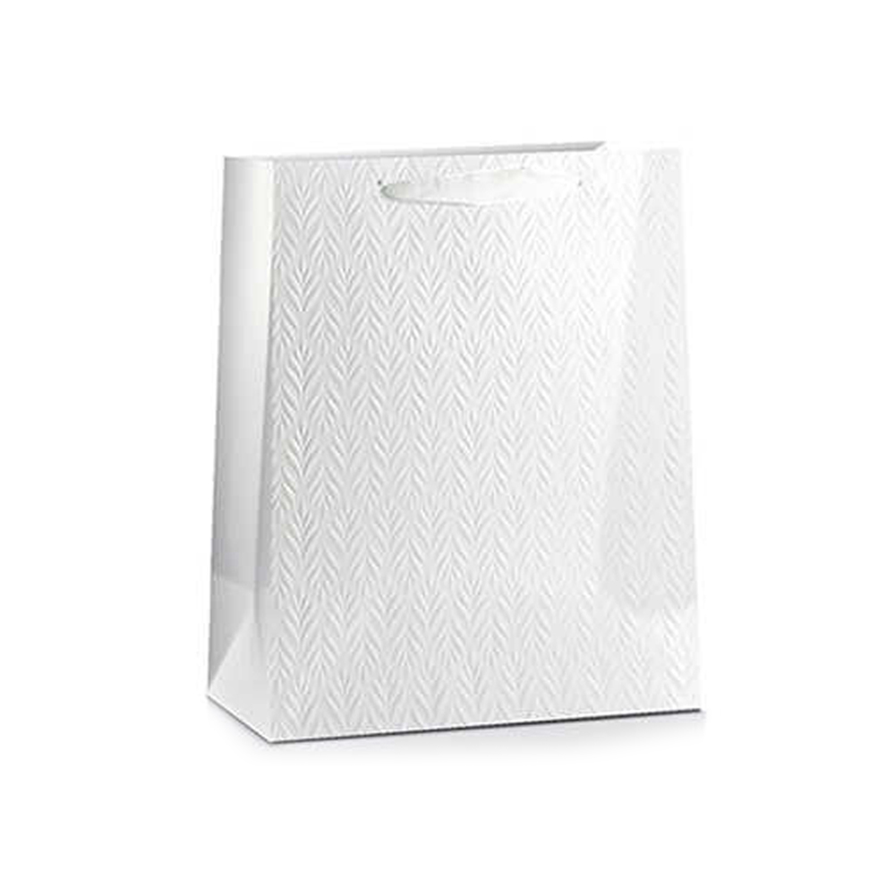 TOREBKA PREZENTOWA LISTKI TŁOCZONA BIAŁA 23x18cm