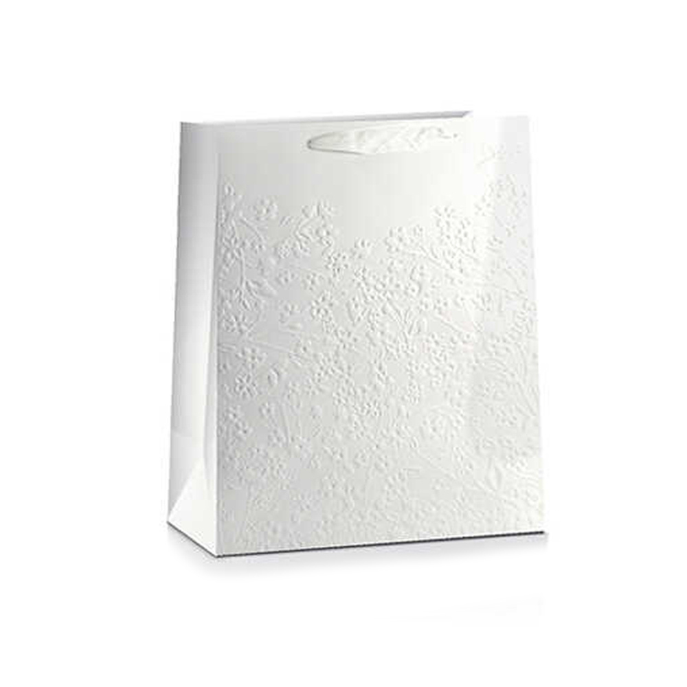 TOREBKA PREZENTOWA MAŁE KWIATKI TŁOCZONA BIAŁA 32x26cm