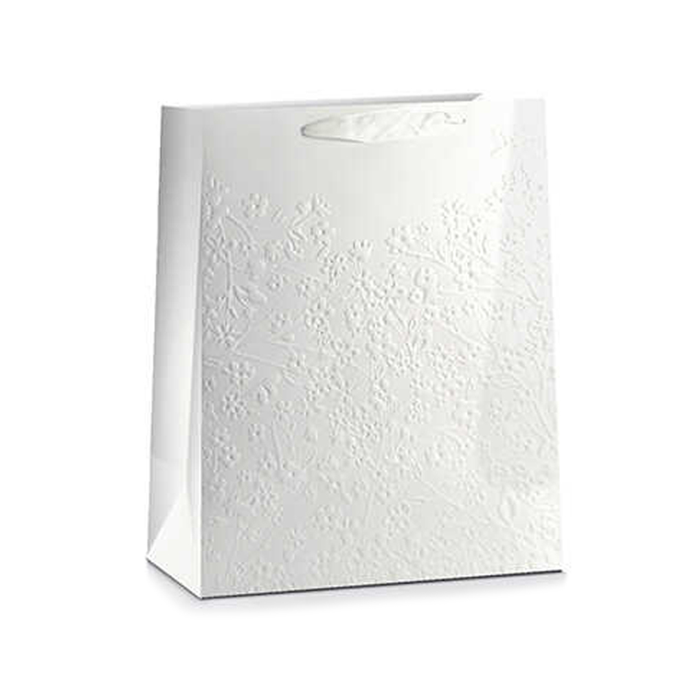 TOREBKA PREZENTOWA MAŁE KWIATKI TŁOCZONA BIAŁA 45x33cm