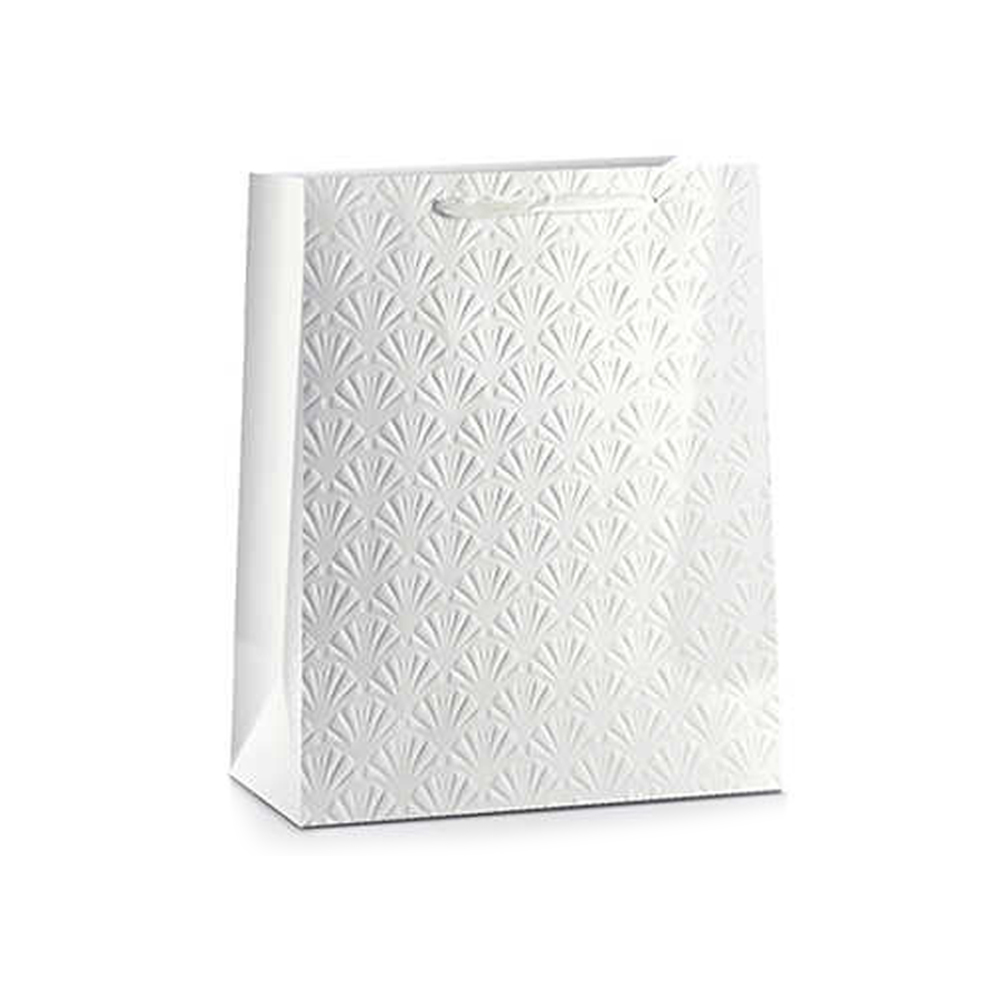 TOREBKA PREZENTOWA MUSZELKI TŁOCZONA BIAŁA 23x18cm