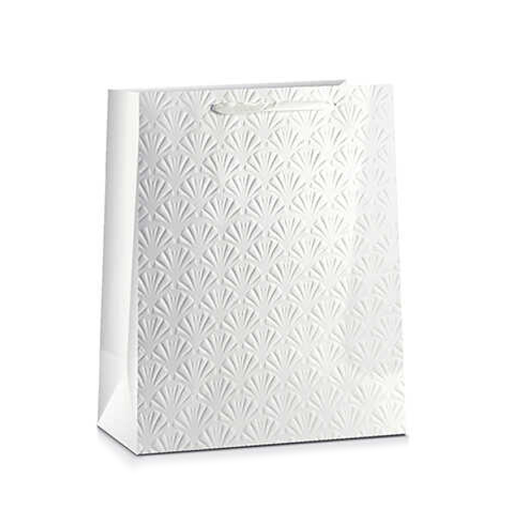 TOREBKA PREZENTOWA MUSZELKI TŁOCZONA BIAŁA 45x33cm