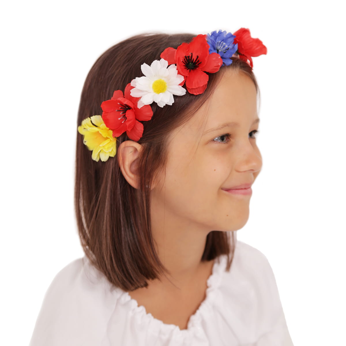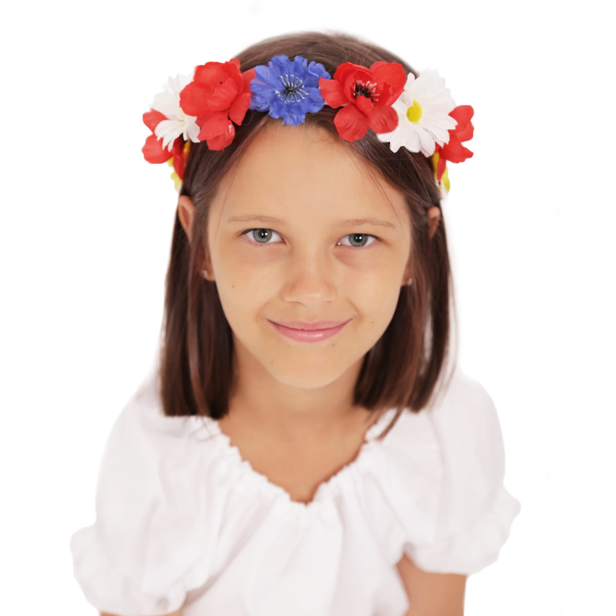 Delikatny wianek w biało-czerwono-niebieskie kwiatki