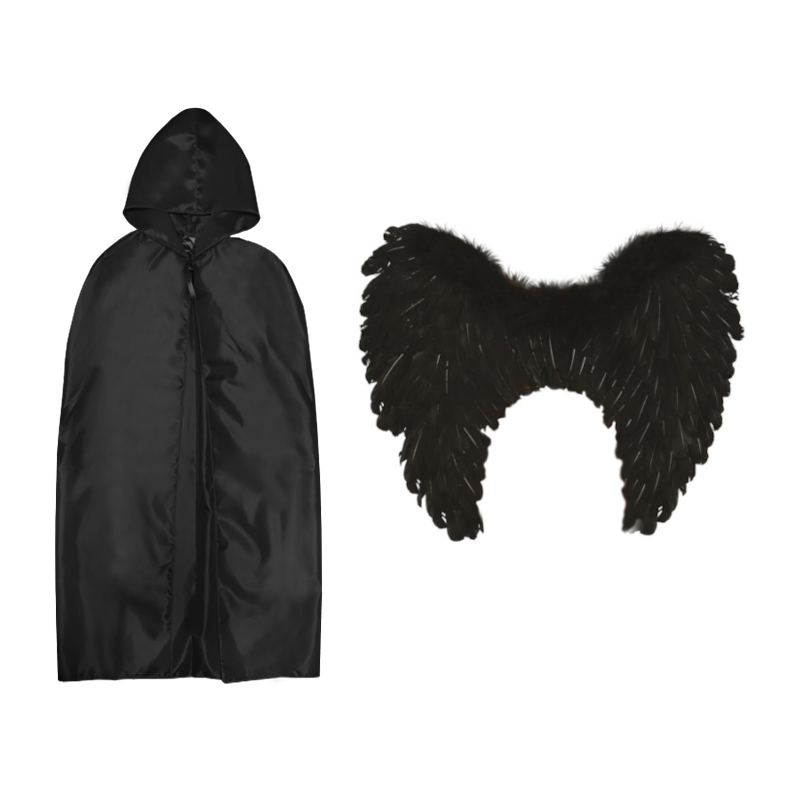 ZESTAW ANIOŁ ŚMIERCI CZARNY PELERYNA 94cm 2el