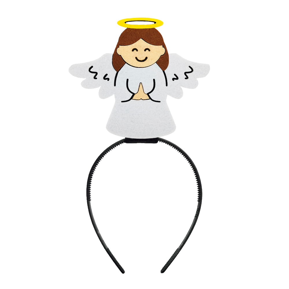 - opaska aniołka złożona z dwóch rozdzielnych elementów: plastikowej opaski oraz filcowego emblematu dziewczęcego aniołka w brązowych włosach