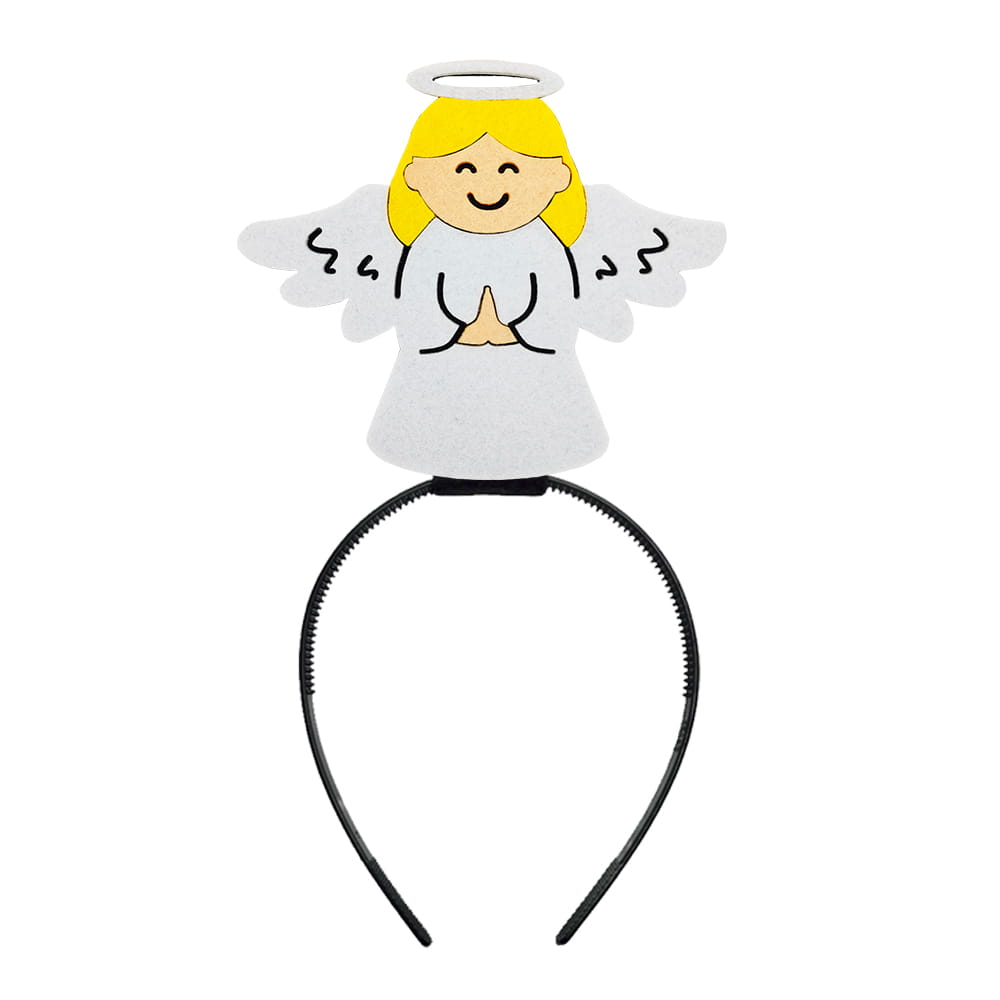 - opaska aniołka złożona z dwóch rozdzielnych elementów: plastikowej opaski oraz filcowego emblematu dziewczęcego aniołka w blond włosach