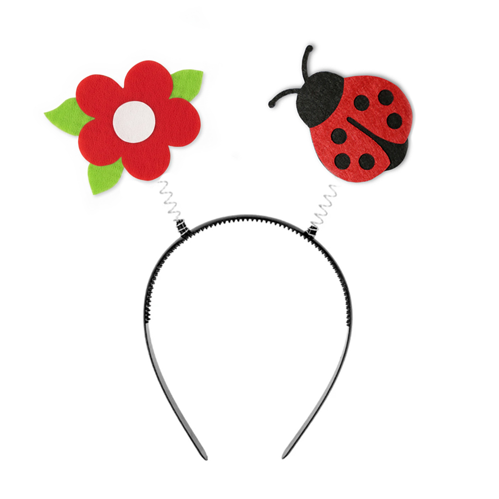- opaska pszczółka - plastikowa opaska ozdobiona jest dwiema elastycznymi sprężynkami, na których delikatnie kołyszą się czerwono-czarna biedronka oraz czerwony kwiatek, tworząc uroczą i wiosenną kompozycję.