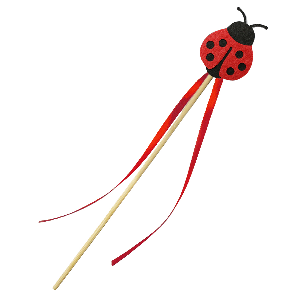 -różdżka biedronka - składa się z trzech elementów: drewnianego patyczka, solidnie przymocowanego emblematu biedronki oraz dwóch czerwonych tasiemek.