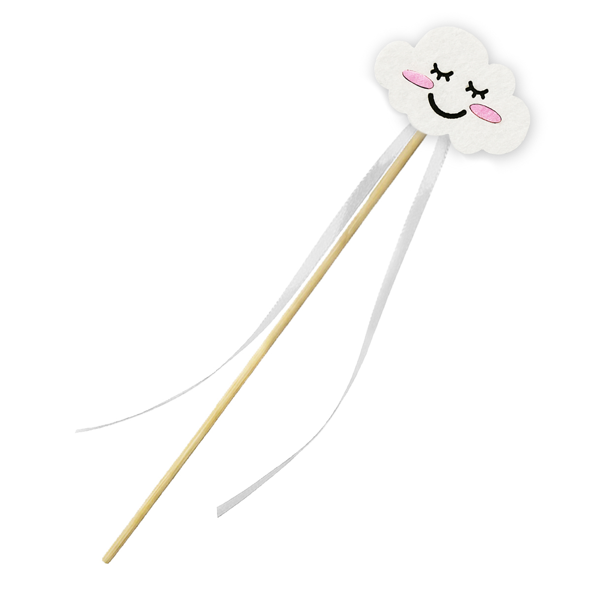 - różdżka chmurka - składa się z trzech elementów: drewnianego patyczka, solidnie przymocowanego emblematu chmurki oraz dwóch białych tasiemek.