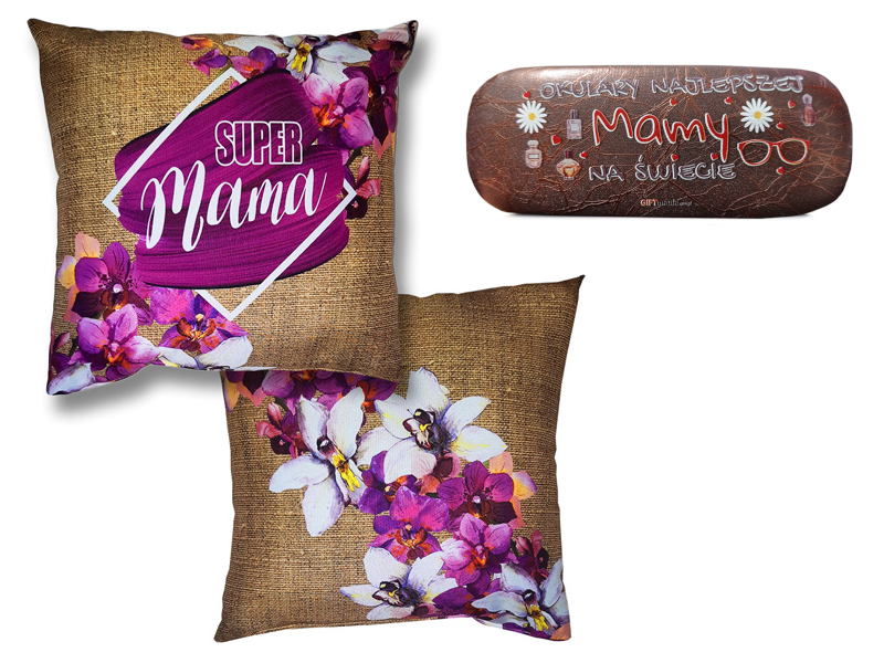 1. PODUSZKA SUPER MAMA BRĄZOWO-RÓŻOWA 35x35cm
