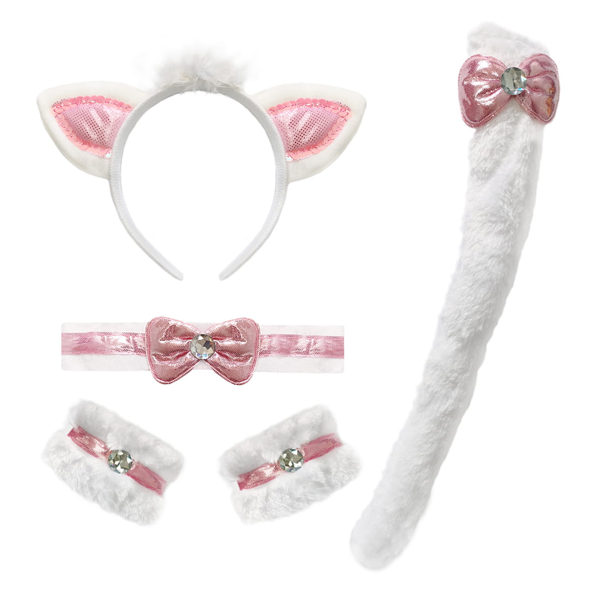 - Skład zestawu: 1. opaska; 2. muszka; 3. mankiety; 4. ogonek