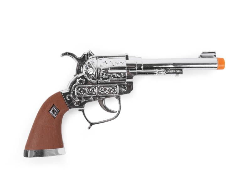 - srebrny plastikowy rewolwer,