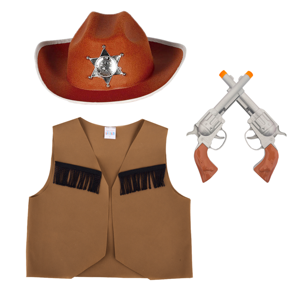 Przenieś się do pełnego przygód świata Dzikiego Zachodu i przemień się w dzielnego kowboja lub szeryfa! Pomoże ci w tym nasz strój, w którego skład wchodzą: