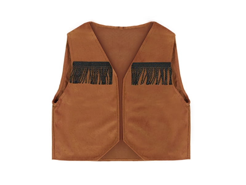 - brązowa welurowa kamizelka z czarnymi frędzelkami.