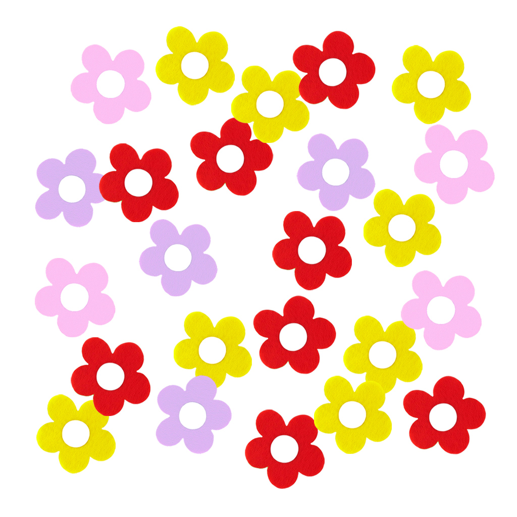 W zestawie znajdziesz 24 filcowych kwiatków w kolorach czerwonym, różowym, żółtym i fioletowym. Są niezwykle lekkie, miękkie w dotyku i łatwe w użyciu, co czyni je idealnym materiałem do twórczych projektów.
