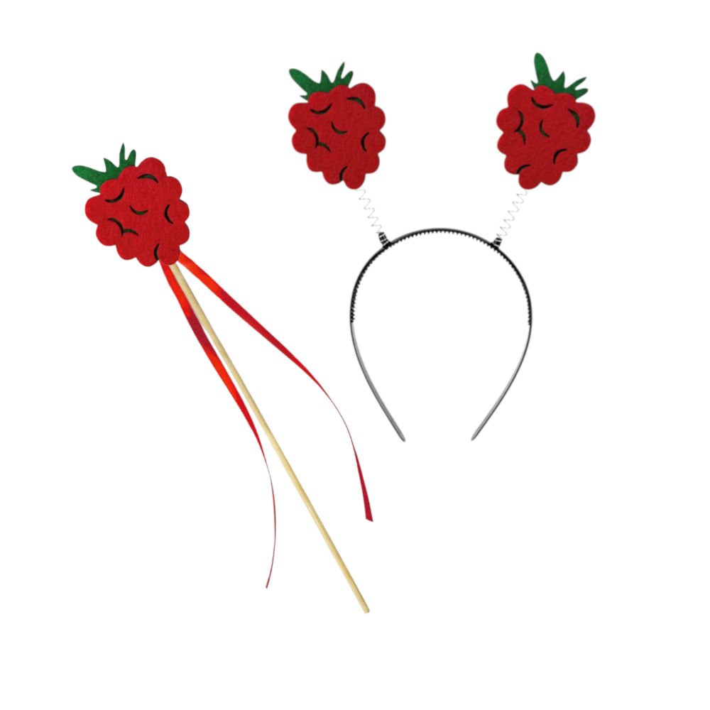 - drewniana różdżka - posiada na szczycie filcowy emblemat czerwonej malinki i ozdobiona jest dodatkowo lekkimi, czerwonymi tasiemkami: