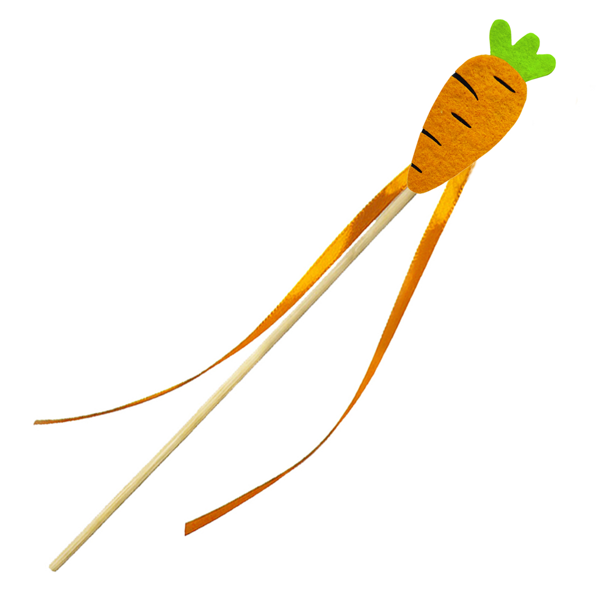 - drewniana różdżka - posiada na szczycie filcowy emblemat pomarańczowej marchewki i ozdobiona jest dodatkowo lekkimi, pomarańczowymi tasiemkami: