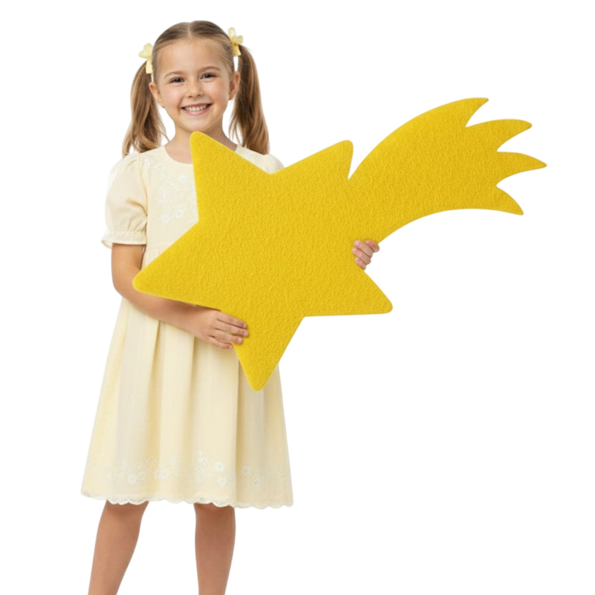 Są to produkty typu maxi-front - jednowarstwowe elementy wycięte z najwyższą precyzją, który mimo swoich dużych gabarytów zachowują lekkość i formę. Brak dodatkowych zdobień sprawia, że gwiazdki są niezwykle uniwersalne: możesz je dowolnie personalizować, naszywać na nie mniejsze elementy lub wykorzystać jako efektowna dekoracja na ścianę, okno czy witrynę sklepową. Wykonane z trwałego filcu w intensywnym żółtym kolorze, będą cieszyć oko przez długi czas. To prosty, a jednocześnie niezwykle efektowny dodatek, który sprawdzi się przy okazjach takich jak Jasełka, szkolne przedstawienia czy jako element aranżacji pokoju dziecięcego!