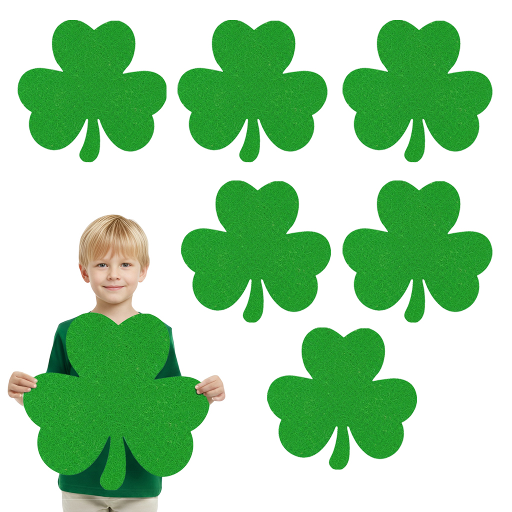 Są to produkty typu maxi-front - jednowarstwowe element wycięte z najwyższą precyzją, które mimo swoich dużych gabarytów zachowują lekkość i formę. Brak dodatkowych zdobień sprawia, że koniczynki są niezwykle uniwersalne: możesz je dowolnie personalizować, naszywać na nie mniejsze elementy lub wykorzystać jako efektowna dekoracja na ścianę, okno czy witrynę sklepową. Wykonane z trwałego filcu w kolorze zielonym, będą cieszyć oko przez długi czas. To prosty, a jednocześnie niezwykle efektowny dodatek, który sprawdzi się przy okazjach takich jak Dzień Wiosny, Dzień Świętego Patryka, szkolne przedstawienia czy jako element aranżacji pokoju dziecięcego!