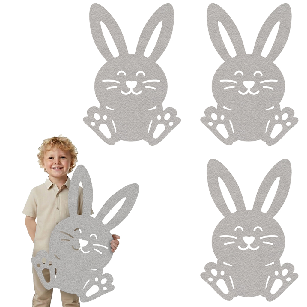 Szukasz wyrazistego elementu dekoracyjnego, który nada charakteru Twoim projektom lub wnętrzu? Te trzy duże, szare zajączki wykonane z wysokiej jakości filcu to idealne rozwiązanie! Dzięki imponującym wymiarom - 52 x 35,5 cm - przyciągają wzrok i stanowią doskonałą bazę do dalszej twórczości lub samodzielną ozdobę!