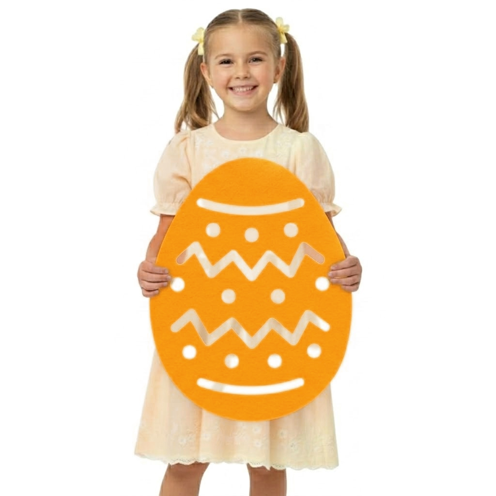 Są to produkty typu maxi-front - jednowarstwowe elementy wycięte z najwyższą precyzją, które mimo swoich dużych gabarytów zachowuje lekkość i formę. Brak dodatkowych zdobień sprawia, że pisanki są niezwykle uniwersalne: możesz je dowolnie personalizować, naszywać na nie mniejsze elementy lub wykorzystać jako efektowna dekoracja na ścianę, okno czy witrynę sklepową. Wykonane z trwałego filcu w kolorze pomarańczowym, będą cieszyć oko przez długi czas. To prosty, a jednocześnie niezwykle efektowny dodatek, który sprawdzi się przy okazjach takich jak Wielkanoc, szkolne przedstawienia czy jako element aranżacji pokoju dziecięcego!